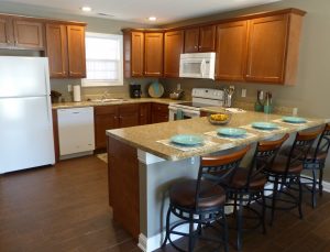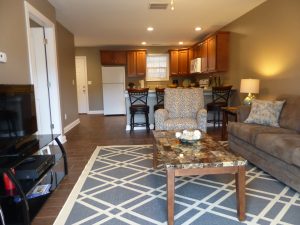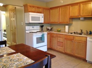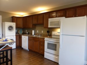 The deluxe two bedroom units are similar to the standard townhouses but also feature an upgraded kitchen with newer cabinets, an over the range microwave, dishwasher, and washer/dryer that all come with the apartment.