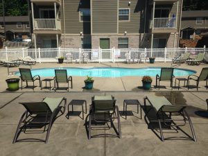 - In addition, the community also boasts the Poolside one bedrooms. Having been completed in late 2016, these upscale units are extremely spacious at almost 750 sq. ft. They also come equipped with a refrigerator, electric range, microwave, dishwasher, and washer/dryer as well as a rear patio or balcony overlooking the pool.